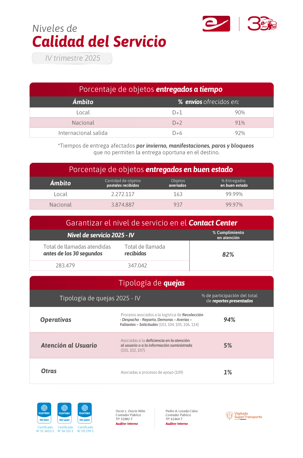 - TÉRMINO PARA INTERPONER SOLICITUD DE INDEMNIZACIÓN: Por parte del REMITENTE: Por pérdida, expoliación o avería, dentro de los 10 días calendario siguientes a la recepción del envío u objeto postal, cuando se trate de servicios nacionales y 6 meses cuando se trate de servicios internacionales. Por parte del DESTINATARIO: Por expoliación o avería deberán ser presentados dentro de las cinco (5) días hábiles siguientes al recibo del objeto postal.